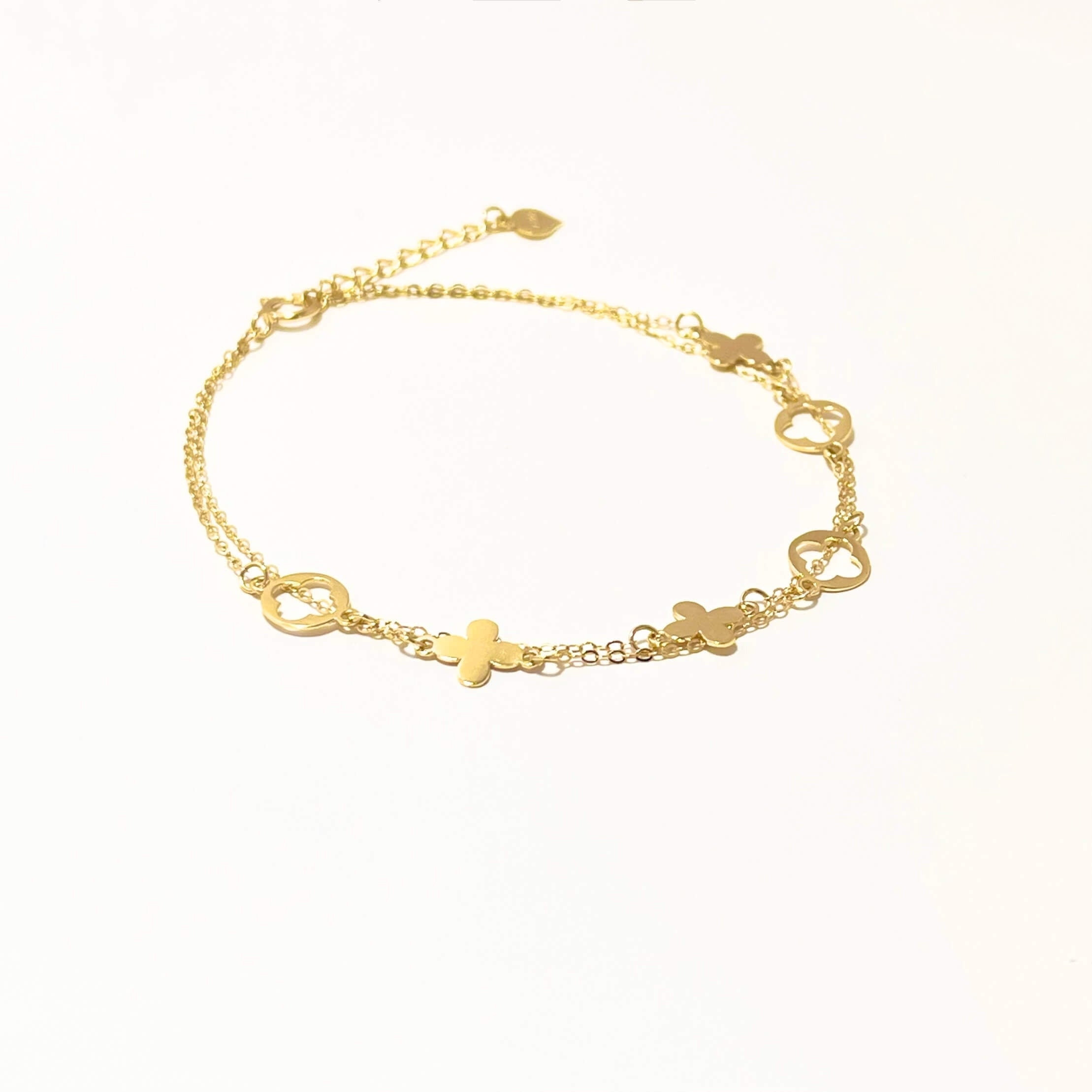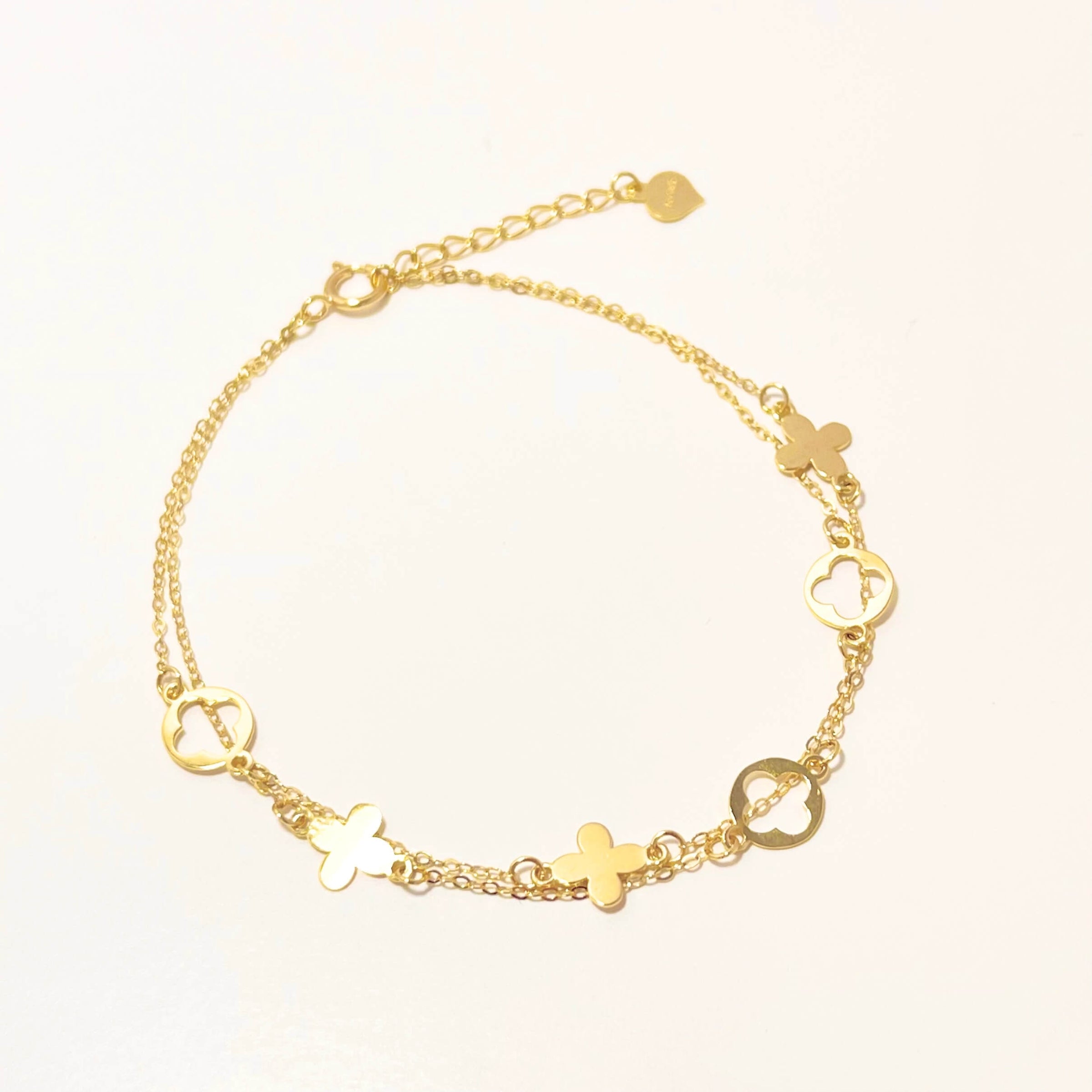 14k Solid Gold Double Chain Multi Clover Bracelet