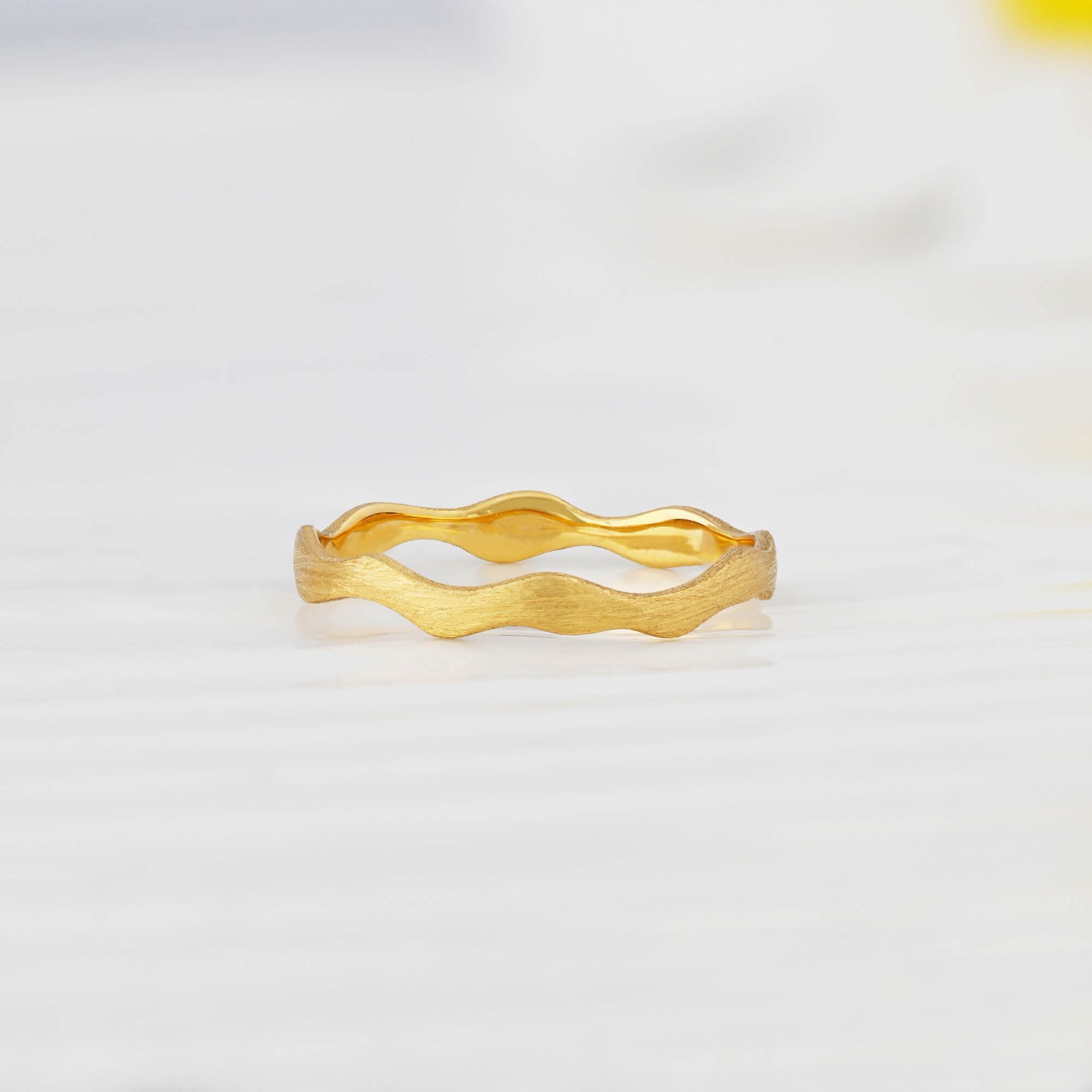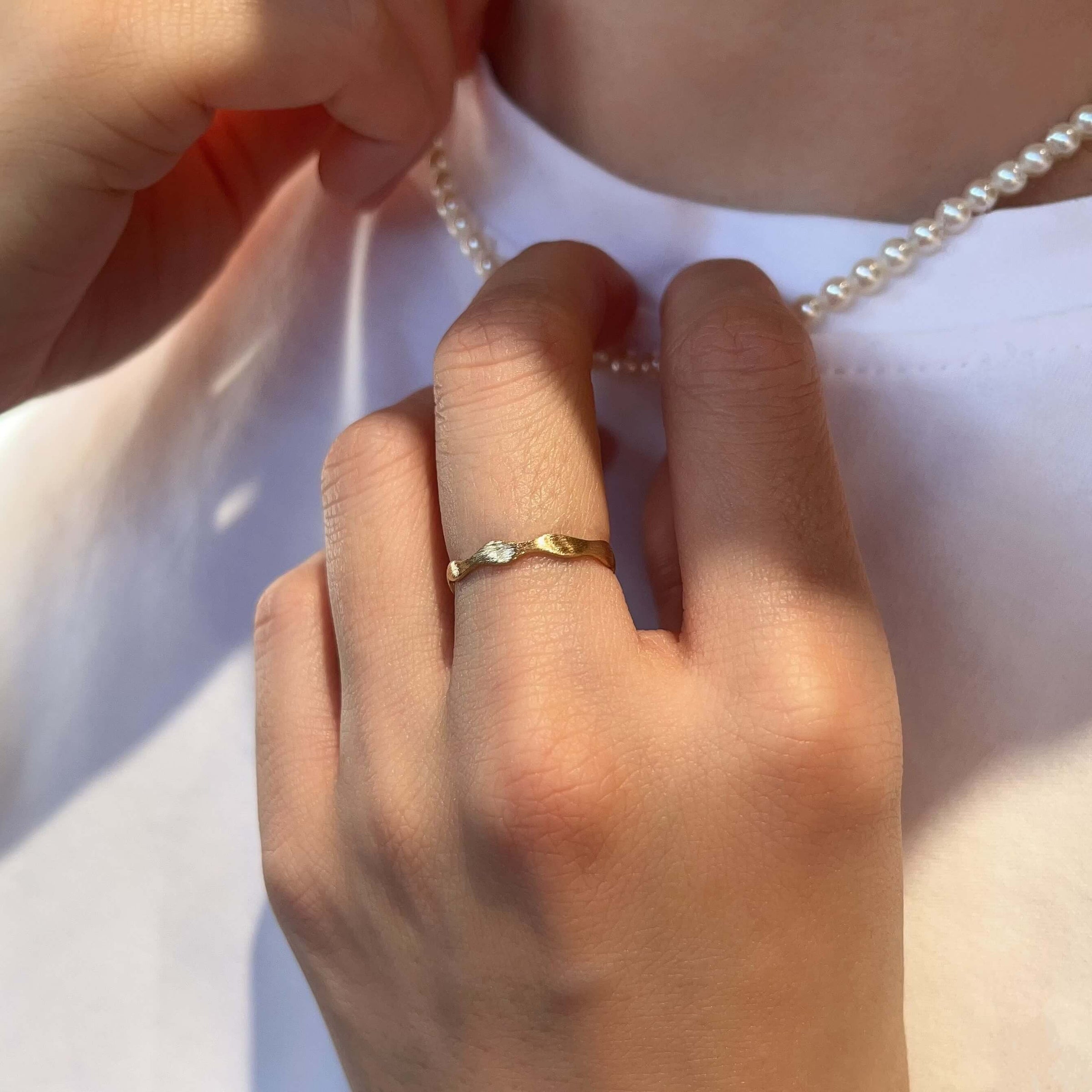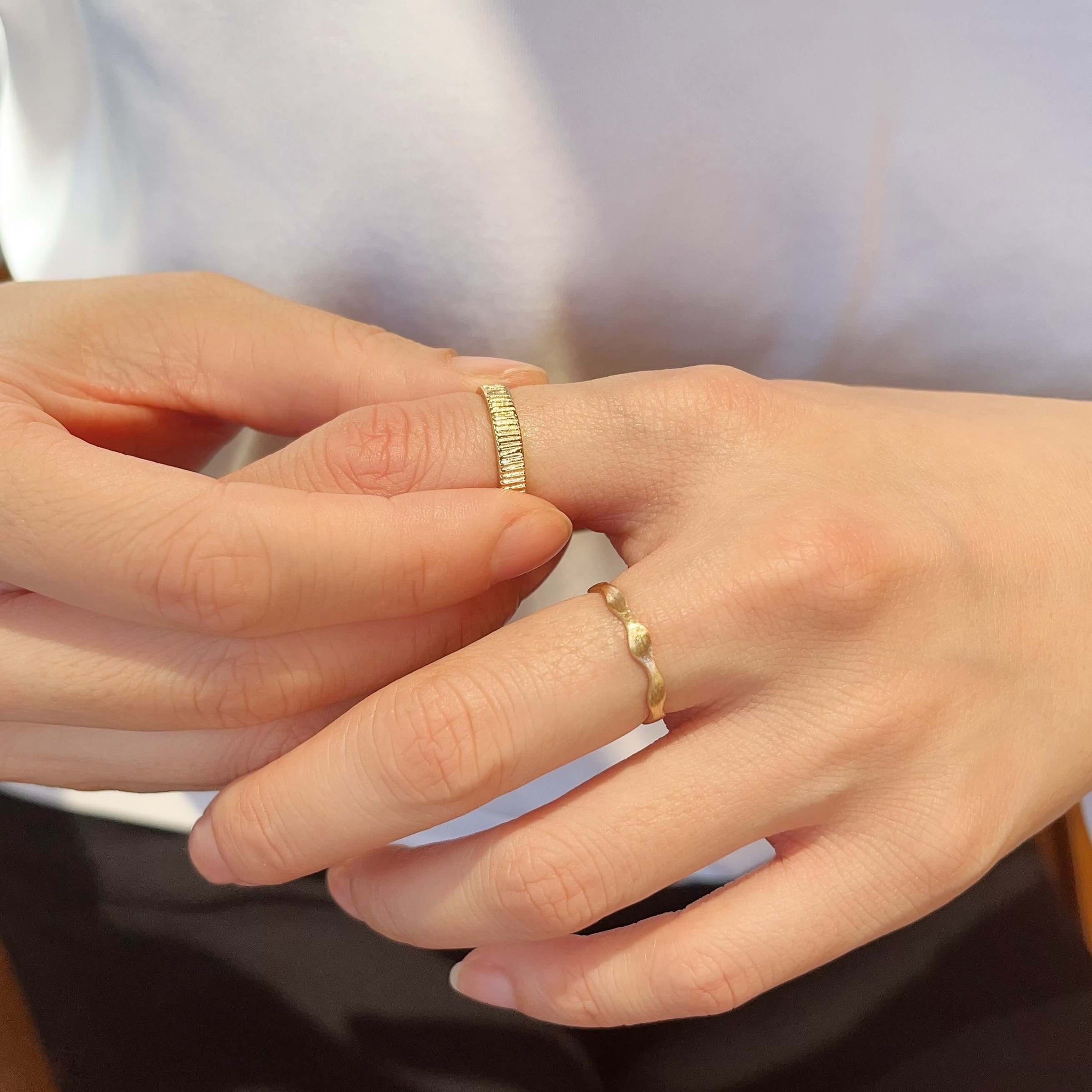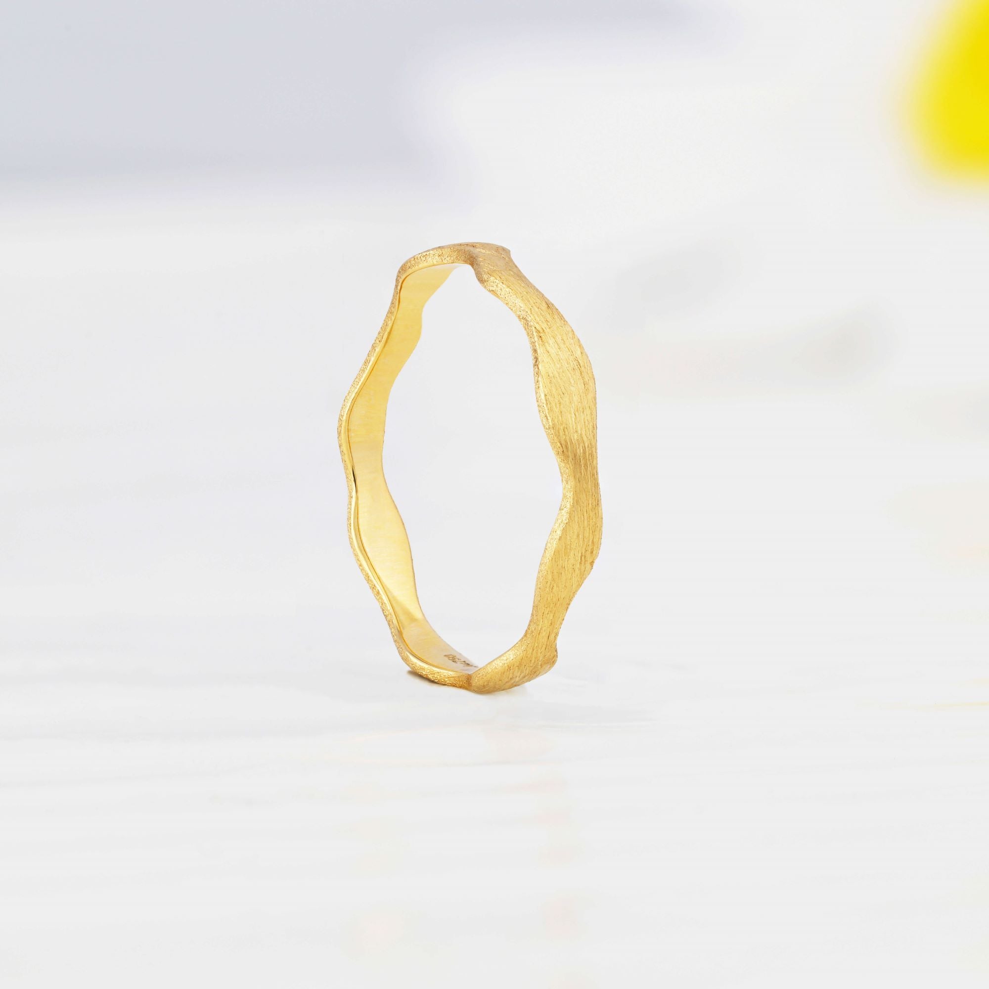 Liquid gold, captured. Handcrafted in 14ct solid gold, this band is a tribute to the undulating rhythms of the ocean. Moving away from the rigidity of traditional jewellery, the Drift Wave Band features an organic, sculpted silhouette that flows naturally around the finger. Finished with a signature velvet-matte texture, the gold possesses a soft, weathered glow that feels both ancient and contemporary.